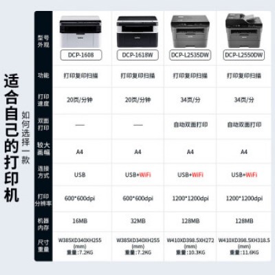 首页 > 办公设备 > A4黑白打印机 > 兄弟(brother)DCP-1608 A4黑白激光多功能一体机 打印/复印/扫描 工业设备