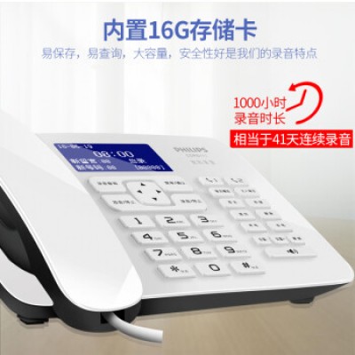飞利浦(PHILIPS)录音电话机 固定座机 办公家用 中文菜单 自动录音可录音1000小时 CORD495白色