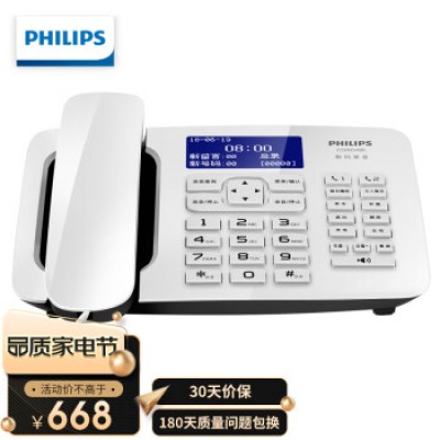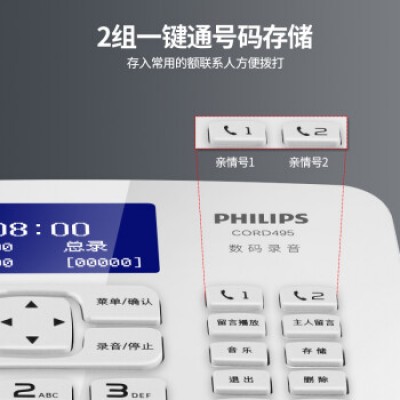首页 > 通信设备 > 普通电话机(不包含移动电话) > 飞利浦(PHILIPS)录音电话机 固定座机 办公家用 中文菜单 自动录音可录音1000小时 CORD495白色
