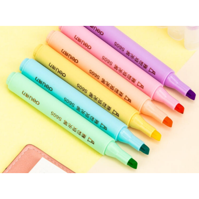 荧光笔 得力S605柔采三角杆荧光笔(混)(盒)