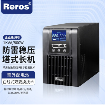 雷诺士Reros企业级UPS不间断电源办公室防雷稳压塔式长机1KVA/800W不含电池单主机
