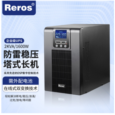 首页 > 电气设备 > 不间断电源 > 雷诺士Reros企业级UPS不间断电源办公室防雷稳压塔式长机2KVA/1600W不含电池单主机