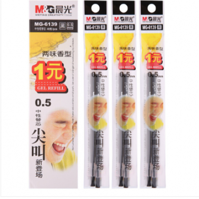 晨光 (M&G) MG6139 黑/蓝/红0.5mm葫芦头香型两支装中性笔替芯 20袋/盒