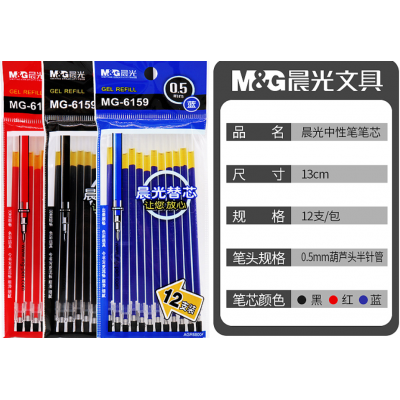 首页 > 办公用品 > 文具 > 晨光(M&G)MG6159半针管中性笔芯 签字笔替芯 0.5mm 黑色(24支装)