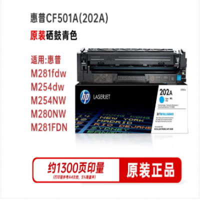 惠普(HP)CF501A 202A 青色硒鼓(适用M254 M280 M281 系列)约1300页 原装打印机硒鼓