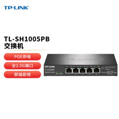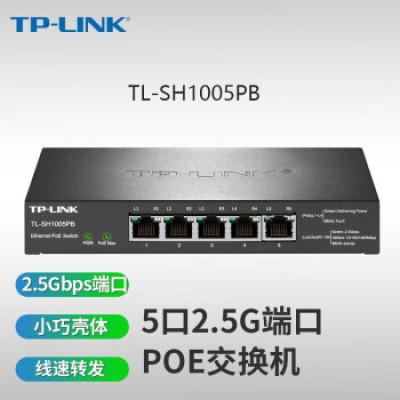 普联(TP-LINK)5口千兆1G/2.5G以太网商用交换机 4口PoE供电 监控交换器企业级 即插即用 TL-SH1005PB