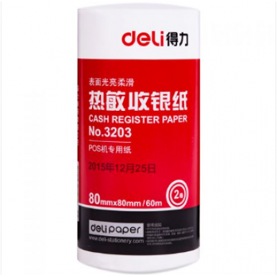 得力(deli) 3203 莱茵河热敏收银纸 80mm*80mm*60m 白 2卷/筒