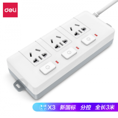 得力3985插座插排_3组_3米_PVC袋装(白)(只)