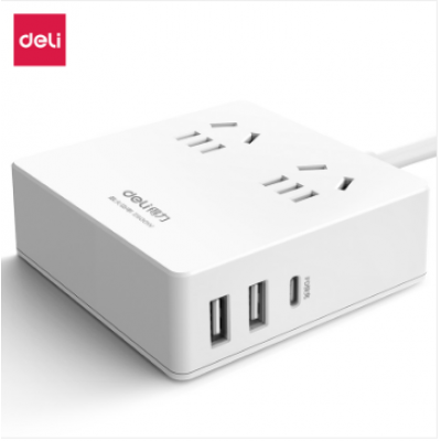得力33650(1.5)插座_2组+3U_1.5米_PET盒装(白)(只)
