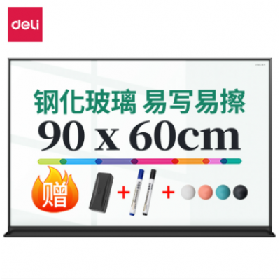 得力50050铝框磁性玻璃白板900*600mm(黑色)(块)