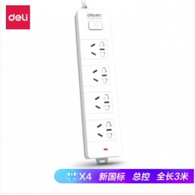 得力18253插座_4组_3米_PVC袋装(白)(只)