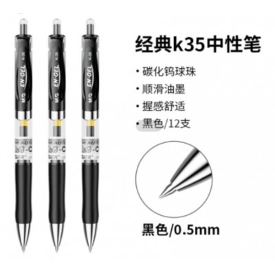 晨光(M&G)K35黑色0.5mm经典子弹头中性笔按动签字笔