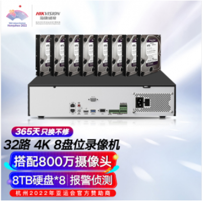 海康威视 DS-8832N-R8网络硬盘录像机监控32路8盘位兼容8TNVR满配32个摄像头带6块4TB硬盘