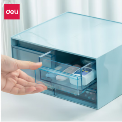 首页 > 办公用品 > 文具 > 得力三格桌面收纳盒 抽屉式办公室用品文具文件分类多层储物盒子 宿舍化妆品杂物防尘整理盒 蓝色PK112