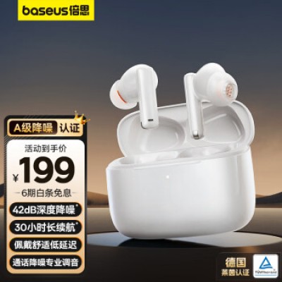 倍思M2 蓝牙耳机真无线 降噪耳机入耳式 42dB主动降噪音乐运动通话长续航通用苹果华为oppo小米手机 白