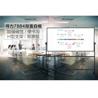 首页 > 办公用品 > 教具 > 得力(deli) 180*90cm H型支架可移动可翻转白板双面磁