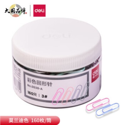 首页 > 办公用品 > 文具 > 得力(deli)29mm莫兰迪彩色回形针 3#金属曲别针 160枚/筒 办公用品 0038-A
