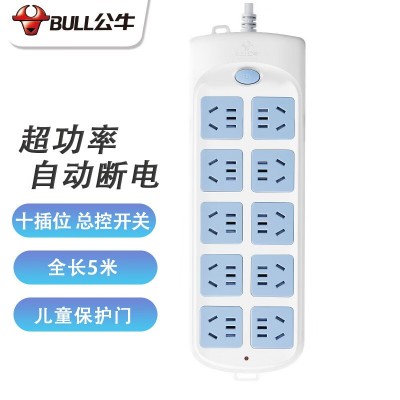 公牛(BULL)超功率保护5米线的公牛10孔插线板上架一款