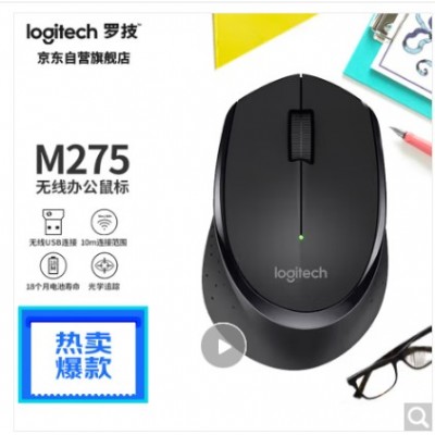罗技(Logitech)M275鼠标 无线鼠标 办公鼠标 右手鼠标 黑色 带无线2.4G接收器 10个起订