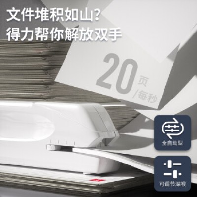 得力(deli)双电源电动订书机 电子自动装订订书器 适配24/6或26/6订书钉 办公用品 白色0489起订3个
