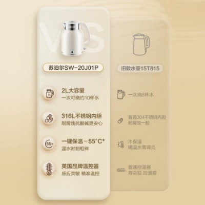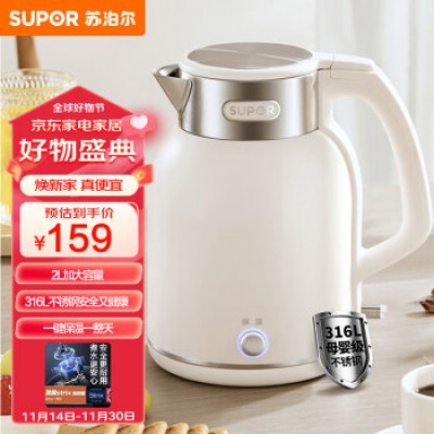 首页 > 用具 > 其他厨房用具 > 苏泊尔(SUPOR)电水壶热水壶 2L全钢无缝双层防烫电热水壶 316L不锈钢烧水壶 一键保温恒温 SW-20J01P