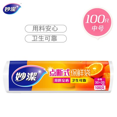 首页 > 装具 > 盥洗、厨房用织物制品 > 妙洁(MIAOJIE) C型点断式PE一次性加厚保鲜袋 中号100只(单只价)