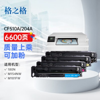 首页 > 办公用品 > 墨粉盒 > 格之格204a硒鼓适用惠普m180n硒鼓 hp m154a硒鼓 M154nw m181 M181fw CF510A彩色硒鼓打印机易加粉带芯片套装