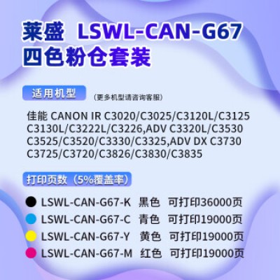 莱盛G67四色粉仓套装 NPG67有芯片适用佳能C3325 C3730 C3725 C3720 C3826 C3830 C3835数码复合机粉盒