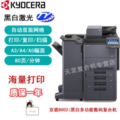 首页 > 办公设备 > 复印机 > 京瓷(KYOCERA)TASKalfa 8002i 黑白激光复合机 A3多功能一体机 彩色扫描 (80页/分钟)+输稿器+四层纸盒