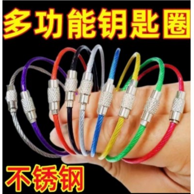 包胶彩色钢丝绳不锈钢钥匙圈绳户内外配件汽车拉伸回弹钥匙扣
