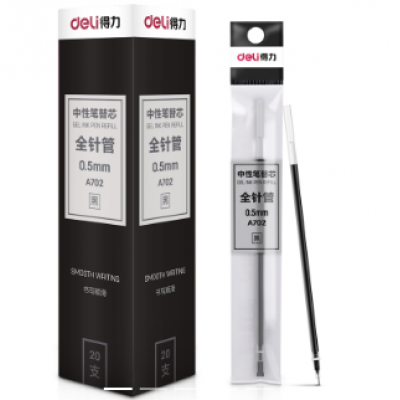 首页 > 办公用品 > 文具 > 得力A702学生中性替芯0.5mm全针管(黑)