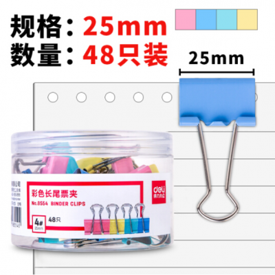 得力(deli)25mm彩色长尾夹票夹 4#金属燕尾夹票据夹子 48只/筒 8554