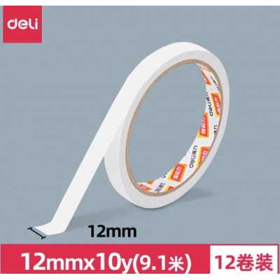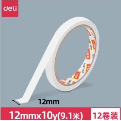 得力30405棉纸双面胶带12mm*10y*80um单独包装双面胶带(1卷/袋)
