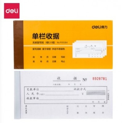 首页 > 办公用品 > 文具 > 得力9384三联单栏收据(黄)87*175mm(本)