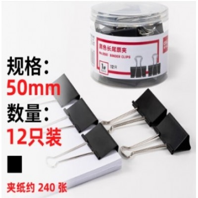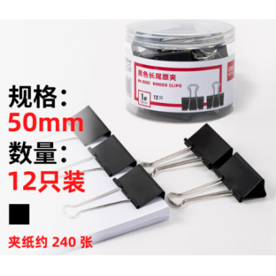 得力 黑色长尾夹票夹 大号燕尾夹50mm 12支/盒