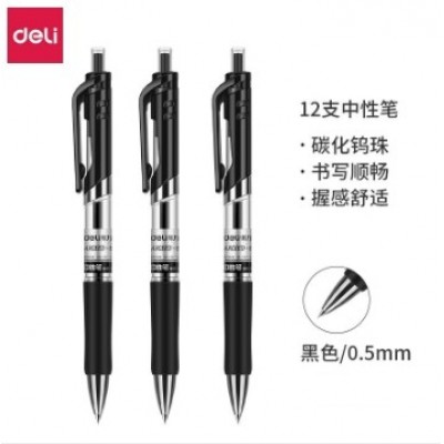 得力S01中性笔(黑)(12支/盒)