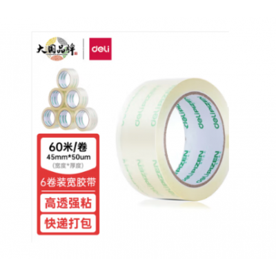 首页 > 办公用品 > 文具 > 得力(deli)品正高品质高透明封箱胶带打包胶带 45mm*60m*50um 6卷/筒 办公用品 33192