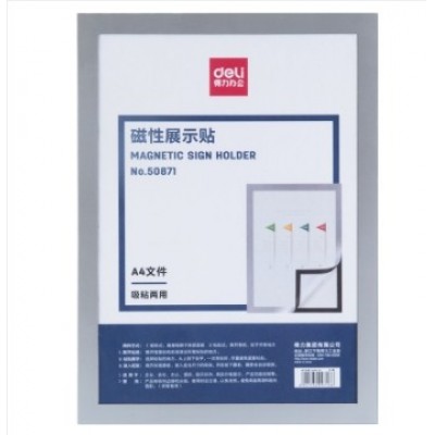 得力 (deli) A4磁性展示贴 营业执照副本保护套文件框 公告栏通知贴纸 24张/包 银色