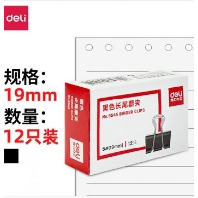 得力 9545 长尾票夹 19mm 12只/筒 (单位:盒) 黑