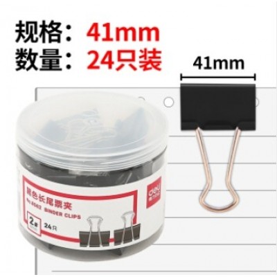 得力8562 黑色长尾夹 多功能夹子 燕尾夹 办公文件票据夹 学生试卷资料夹 24只(41mm)