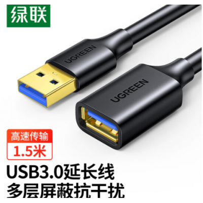 绿联 USB3.0延长线公对母 高速传输数据连接线 电脑U盘鼠标键盘打印机充电器分线器扩展延长加长转接线1.5米