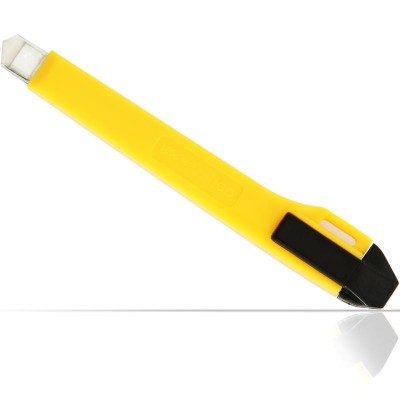 【特点】刀片推出后可自动上锁,方便操作;拔出柄盖帽,在刀片凹槽用力即可折断取下钝刀。