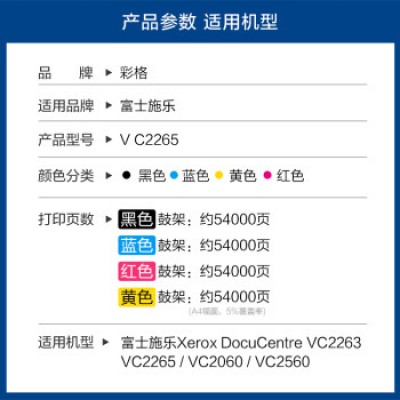 首页 > 办公用品 > 鼓粉盒 > 彩格V C2265粉盒适用施乐五代 VC2265 VC2060粉盒VC2263碳粉 复合机墨粉盒 感光鼓四色套装 五代