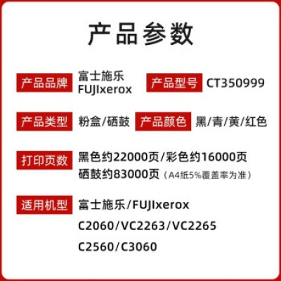 首页 > 办公用品 > 鼓粉盒 > 原装富士施乐VC2263墨粉V2265施乐C2060/C3060/C2560粉盒2263硒鼓 施乐CT202496-99五代墨粉四色套装