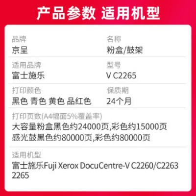 首页 > 办公用品 > 鼓粉盒 > 京呈适用五代施乐DocuCentre-VC2265 VC2060粉盒VC2263碳粉打印机墨盒硒鼓 R1黑色感光鼓CT351088 五代