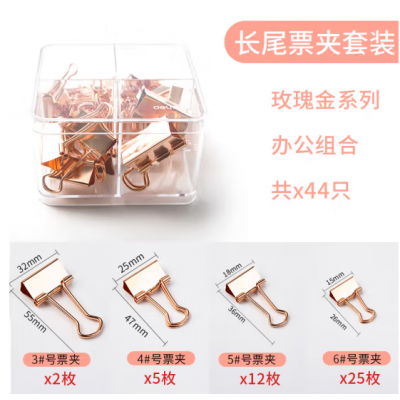 得力78205长尾票夹套装(玫瑰金)(44只/盒)