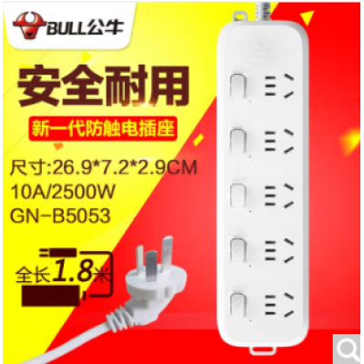 首页 > 建筑建材 > 开关插座 > 公牛插座插排5插位1.8米分控开关拖接线板宿舍家用正品多孔功能插线板排插5053