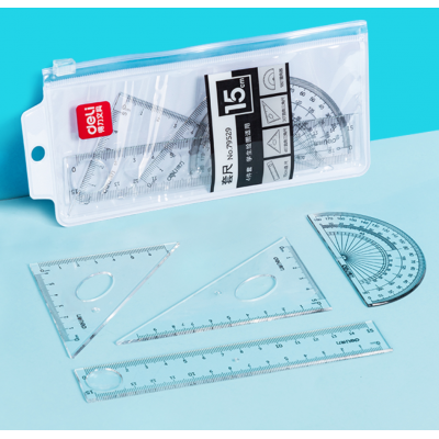 得力(deli) 绘图套装学生套尺直尺三角尺子量角器学生文具四件套尺子几何数字 四件套79529