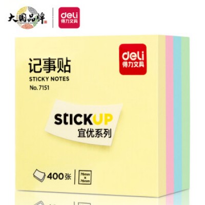得力(deli)400页4色简约便利贴便签纸 76*76mm便签本/记事贴/自粘留言本笔记本本子 办公用品 7151