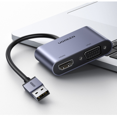 绿联CM449 USB3.0转HDMI/VGA转换器 笔记本外置显卡电脑连接电视投影仪高清视频同屏扩展转接头线 深空灰